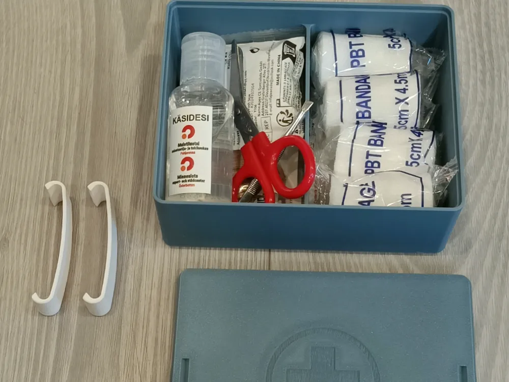 En 3D-printad kompakt första hjälpen-låda för bil, verkstad eller resor.