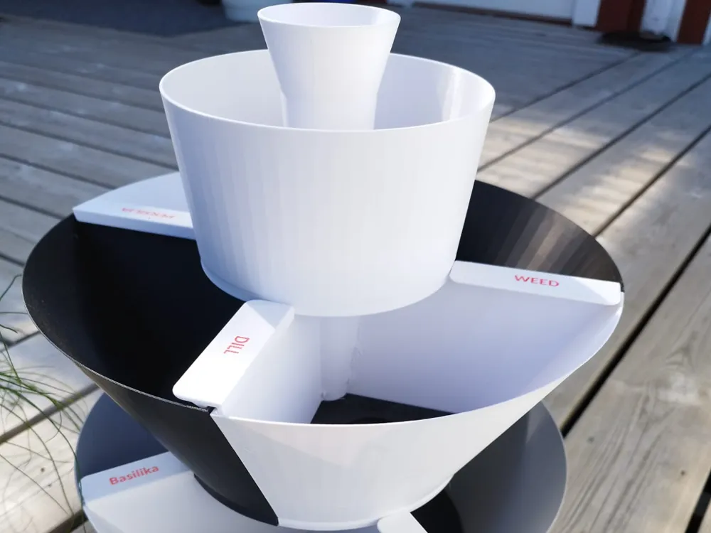 Den här designen använder ett enkelt gravitationsbaserat system för att hålla en jämn fuktnivå.
